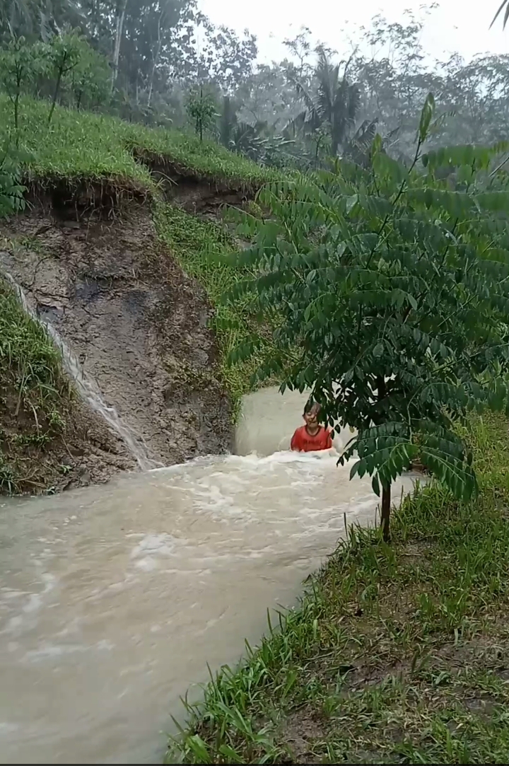 Yang di antisipasi oleh warga setempat agar air tidak terus menerus menggerus bibir jalan