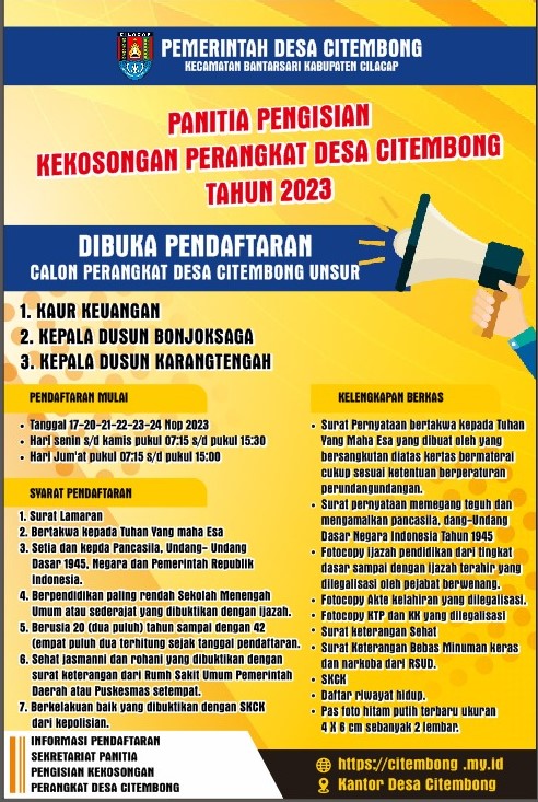 TAHAPAN PANITIA PENGANGKATAN PERANGKAT DESA CITEMBONG TAHUN 2023