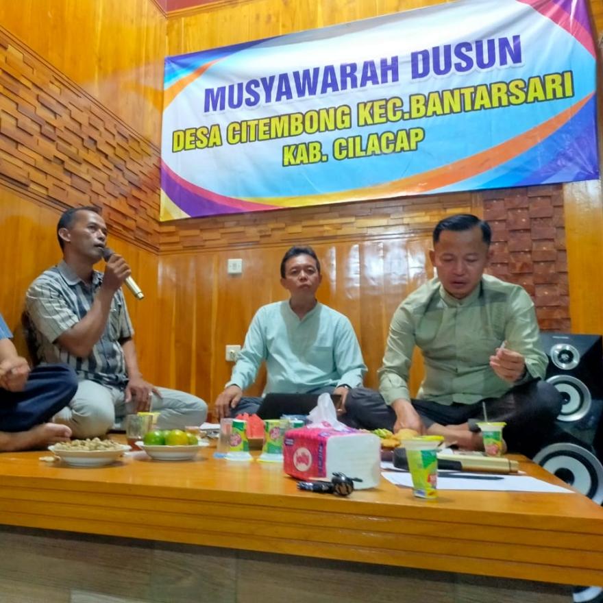Musyawarah dusun yang dilaksanakan pada malam Minggu di rumah Pak Kadus Nursalim bertujuan untuk menggali gagasan dan masukan dari warga Dusun Citembong. Acara ini dihadiri oleh 45 warga setempat, dan dibimbing langsung oleh Pak Kades serta Pak Sekdes sebagai narasumber. Dalam pertemuan tersebut, warga diberi kesempatan untuk menyampaikan ide-ide serta usulan mengenai berbagai hal yang berkaitan dengan pembangunan dan kemajuan dusun. Musyawarah ini diharapkan menghasilkan keputusan yang baik dan bermanfaat untuk kesejahteraan seluruh warga.