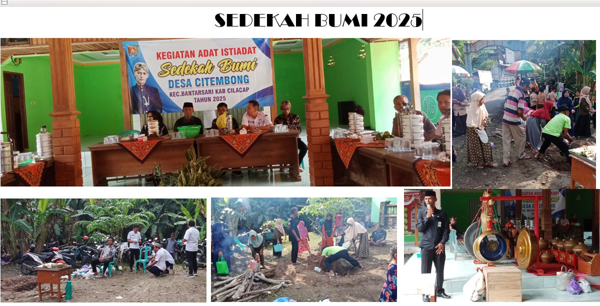Pada hari Jumat Kliwon, 23 Mei 2025, telah dilaksanakan kegiatan adat Sitiadat atau lebih dikenal dengan Sedekah Bumi di Desa Citembong, Kecamatan Bantarsari, Kabupaten Cilacap. Kegiatan ini merupakan wujud rasa syukur masyarakat kepada Tuhan Yang Maha Esa atas hasil bumi dan kehidupan yang telah diberikan.