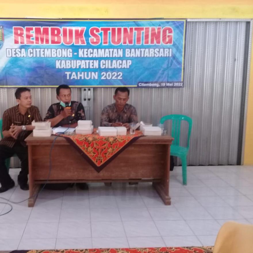 Kami Kepala Desa desa Citembong, Perangkat Desa Citembong , BPD Desa Citembong, Anggota Tim Penangaan Stuting Desa Citembong, Tim Kesehatan Kecamatan Bantarsari, Kasi Pelayanan Kecamatan Serta Bersama Tokoh Masyarakat yang lain duduk bersama mengadakan Rembug Stunting yang dilaksanankan dihari Kamis tanggal 19 Mei 2022 yang bertempat di balai desa Citembong.