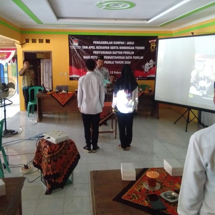 Sebanyak 9 petugas pemutakhiran data pemilih pemilu 2024 Desa Citembong Kecamatan bantarsari Kabupaten Cilacap Prov. Jawa Tengah dilantik dan diambil sumpahnya di kantor Pemerintahan Desa Citembong, Kecamatan bantarsari Kabupaten Cilacap Prov. Jawa Tengah, Minggu (12/2/2023) oleh KPU Cilacap melalui ketua PPS Desa Citembong, Kecamatan bantarsari Kabupaten Cilacap Prov. Jawa Tengah.