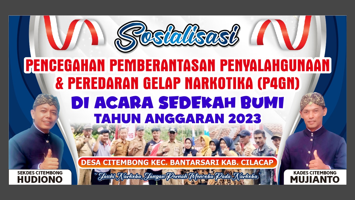 Sosialisasi pencegahan, pemberantasan penyalahgunaan, dan peredaran gelap narkotika (P4GN) di Desa Citembong yang dijadwalkan pada tanggal 12 Juni 2023 akan melibatkan beberapa narasumber, termasuk perwakilan dari Kantor BPN Kabupaten Cilacap, Dipermades Cilacap, Camat Batarsari, Kapolsek Bantarsari, dan Daramil Kawunganten. Sosialisasi ini bertujuan untuk meningkatkan kesadaran masyarakat tentang bahaya narkotika dan langkah-langkah yang dapat diambil untuk mencegah penyalahgunaan serta memberantas peredaran gelap narkotika di wilayah Desa Citembong dan sekitarnya.