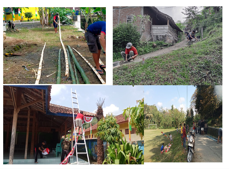 Menata area sekitar untuk persiapan kegiatan HUT RI